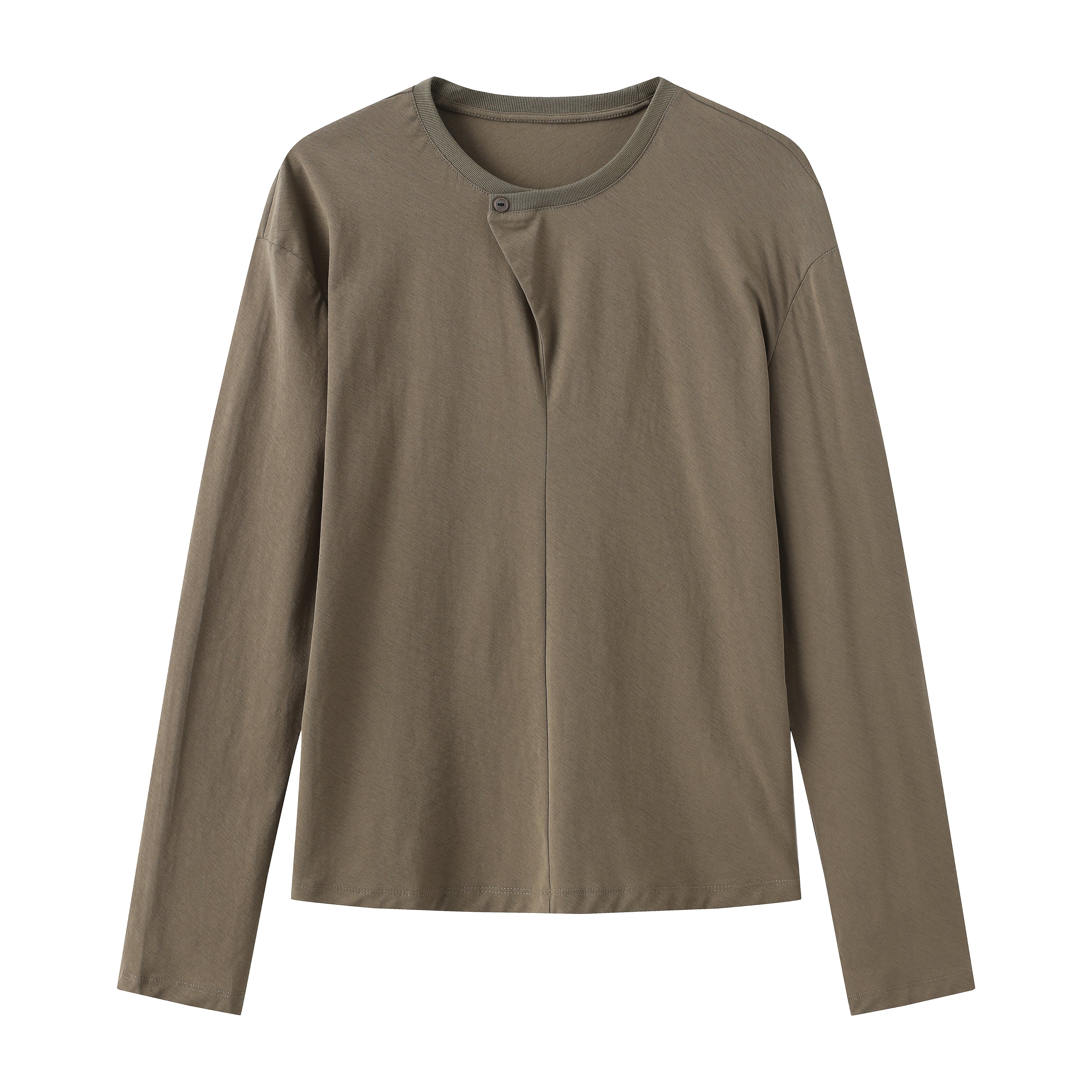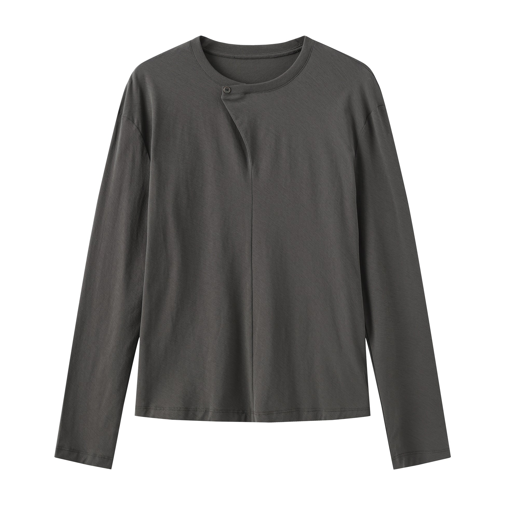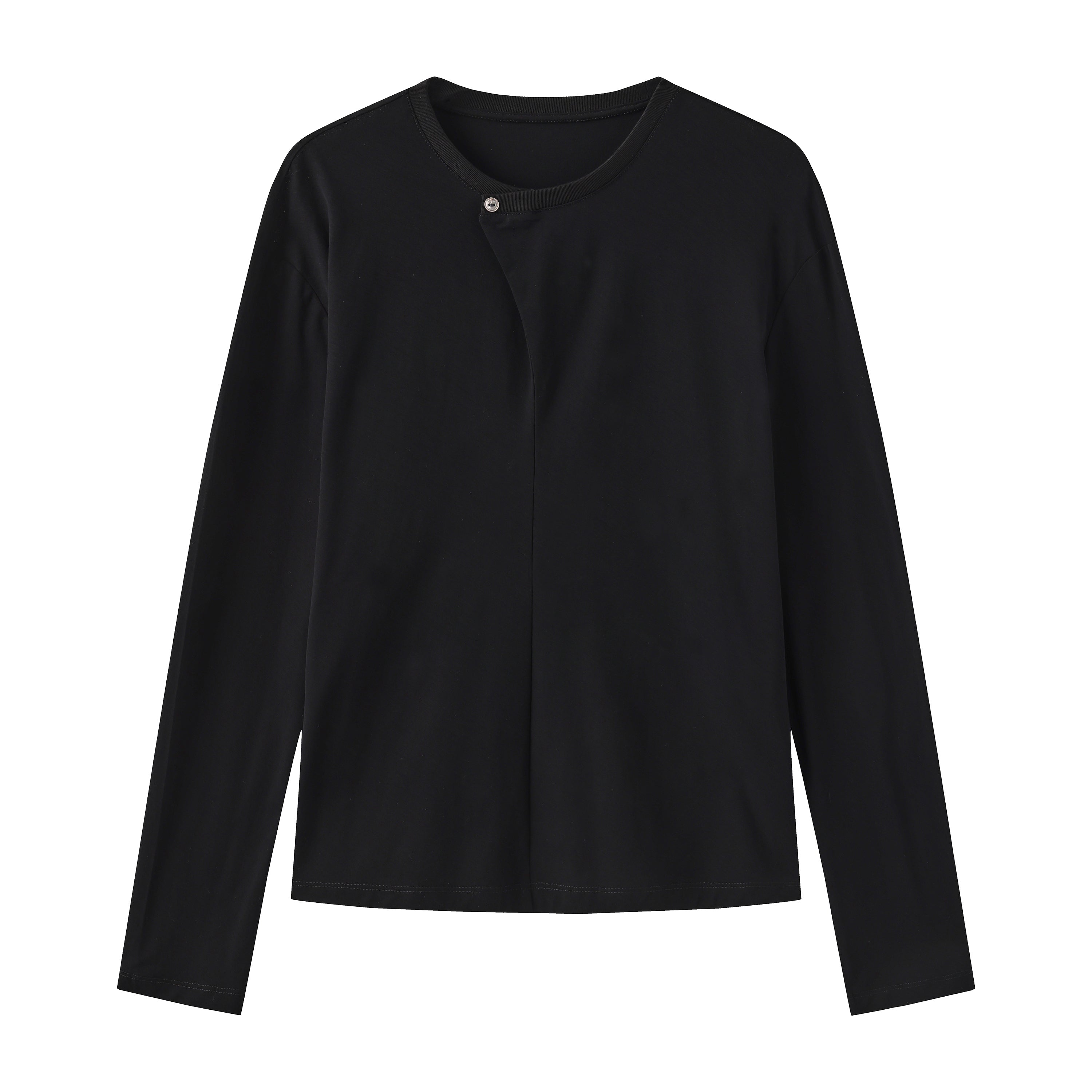 Clean Cut One-Button Cotton Top 设计感一粒扣长袖T恤 正肩宽松极简贝壳棉